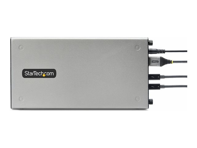 Ajoutez deux cartes compatibles PCI-Express 3.0 x16 et augmentez les capacités potentielles d'un ordinateur portable, d'un ordinateur de bureau ou d'un tout-en-un compatible Thunderbolt 3 ou 4. Ce boîtier d'extension Thunderbolt 3 PCIe vous permet de profiter de la vaste gamme de cartes d'extension PCIe avec des ordinateurs qui ne disposent pas de fentes PCIe. Le boîtier vous permet de connecter un écran externe via les ports DisplayPort (DP) ou Thunderbolt 3, prenant en charge des résolutions Ultra Haute Définition (UHD) en 4K ou 8K.