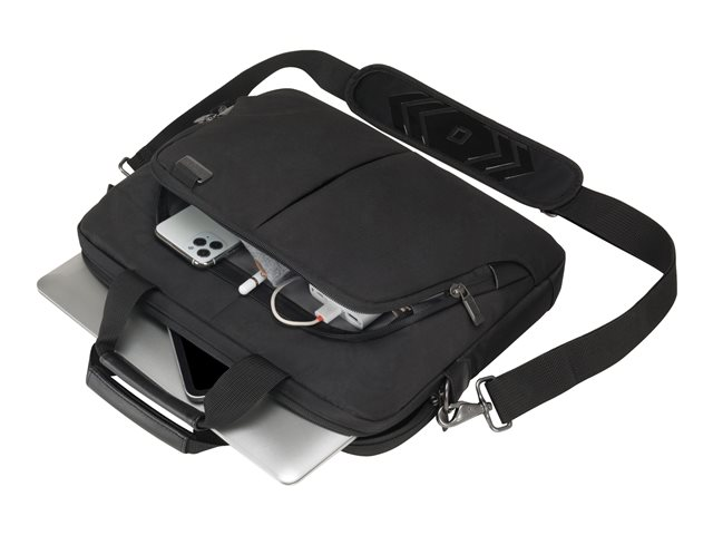 L'Eco Slim Case PRO vous accompagne en toute fiabilité, peu importe où vous allez. Le sac ultrafin répond aux plus hautes exigences en termes de qualité et de fonctionnalité. La séparation rembourrée du compartiment ordinateur s'adapte parfaitement à votre appareil et maintient les ordinateurs de 12-14.1". Grâce au rembourrage perforé et léger en mousse EVA, votre ordinateur est protégé de manière optimale. La poignée en cuir de haute qualité offre un transport confortable au quotidien. En plus du compartiment pour ordinateur portable, l'Eco Slim Case PRO dispose d'un compartiment rembourré pour les tablettes jusqu'à 10.5". De plus, le sac offre un large compartiment coté dorsal pour les documents. Dans la poche frontale, vous pouvez ranger vos accessoires personnels et autres accessoires. La bande de fixation pour trolley offre un confort parfait lors de voyages avec un bagage supplémentaire. Cela fait de l'Eco Slim Case PRO le sac parfait pour tous ceux qui se déplacent souvent et qui souhaitent soutenir la réutilisation raisonnable des bouteilles en PET grâce à une solution de transport écologique.