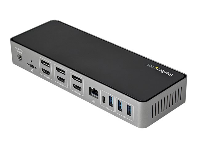 | Interfaces | 3 x USB 3.1 Gen 2 - USB 9 broches type A 1 x USB-C 3.1 Gen 2 - 24 pin USB-C 1 x USB-C 3.1 Gen 1 (uniquement données) - 10 broches USB-C 3 x affichage / vidéo - HDMI de 19 broches de type A 1 x réseau - 10Base-T/100Base-TX/1000Base-T - RJ-45 3 x affichage / vidéo - DisplayPort 20 broches 1 x combo jack microphone/casque - mini-phone 3,5 mm 1 x USB-C 3.0 - 24 pin USB-C 1 x SuperSpeed USB 3.0 - USB 9 broches type A |