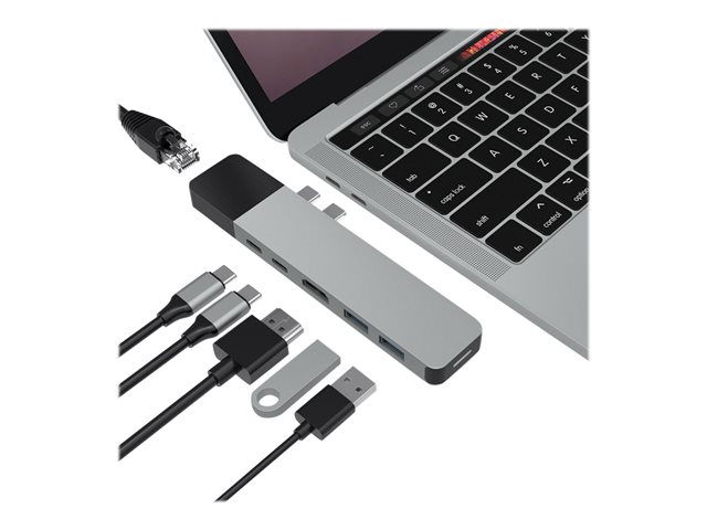 HyperDrive Net 6-in-2 Hub - Station d'accueil - USB-C x 2 - HDMI - 1GbE GN28N-GRAY