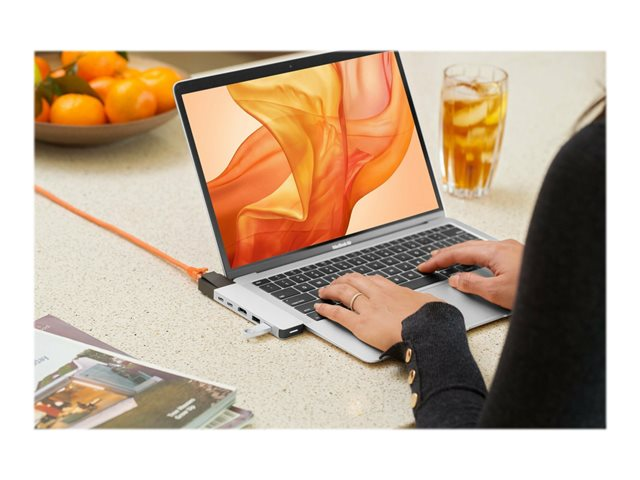 Hub USB-C de forme adaptée pour MacBook Pro et MacBook Air. Ce puissant adaptateur USB-C ajoute 6 ports : adaptateur ethernet gigabit, HDMI 4K, alimentation USB-C de 100 W, et plus encore.