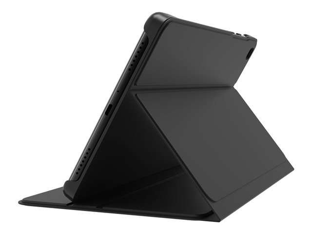 L'étui-support à rabat rigide présente un design à la fois mince et léger avec une protection supplémentaire des coins pour maximiser la longévité et la convivialité de votre tablette. Les modes d'utilisation double vous permettent de positionner votre tablette dans deux angles différents, parfaits pour naviguer ou visionner des films confortablement.