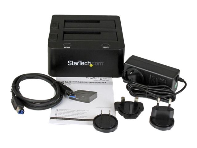StarTech.com Dual-Bay USB 3.0 to SATA Hard Drive Docking Station, USB Hard Drive Dock, External 2.53.5 SATA IIIIII, SSDHDD Docking Station, Hot-Swap Hard Drive Bay - Top-Loading - Contrôleur de stockage - 2.5", 3.5" - SATA 6Gb/s - USB 3.0 - noir - pour P/N: SVA12M5NA