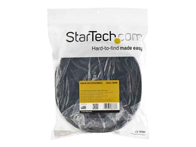 StarTech.com Attaches de câble à boucles auto-agrippantes en vrac - Rouleau de 30,4 m - Sangle pour câbles sur mesure - Noir (HKLP100) - Rouleau d'attache de câble - 30.4 m - pour P/N: CMHOOK1U, HKLP100BL, HKLP100GN, HKLP100RD, HKLP100YW HKLP100
