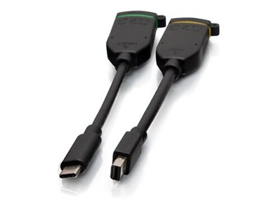La boucle d'adaptateurs universelle dongle 4H HDMI brevetée (US 11,444,419 B2) est le complément idéal pour les salles de conférence, les huddle rooms, les amphithéâtres ou les salles de classe, permettant ainsi à tout le monde de se connecter. La configuration standard comprend des adaptateurs permettant de connecter pratiquement tous les appareils à l'écran dans la salle, tout en prenant en charge une résolution vidéo jusqu'à 4K. C2G propose différentes combinaisons de connexions pouvant inclure des adaptateurs HDMI vers DisplayPort, Lightning, Mini DisplayPort, Micro HDMI, Mini HDMI, USB-C, VGA pour répondre aux défis de connectivité. Si vous avez besoin d'une connectivité supplémentaire, C2G a récemment lancé des adaptateurs dongle USB-A vers USB-C qui prennent en charge la transmission de données USB 2.0 (480 Mbps) uniquement.