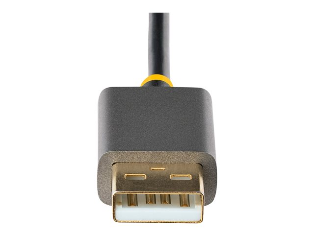 Le convertisseur HDMI vers DP est doté d'un câble de 30 cm entre les connecteurs HDMI et DP, ce qui réduit la tension sur les ports et les connecteurs. L'adaptateur comprend un câble USB-A de 30 cm pour la connexion à un port USB alimenté à proximité ou à un chargeur mural USB.