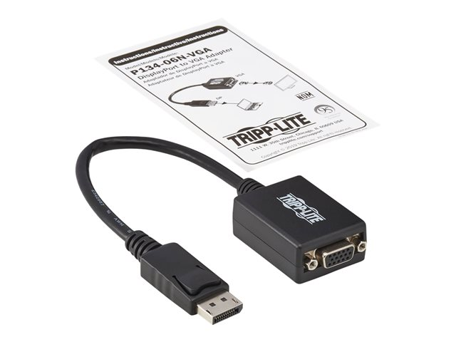 Tripp Lite Adaptateur de câble actif DisplayPort vers VGA, 1920x1200/1080p (M/F), 15 cm (6 pouces) - Carte d'écran - DisplayPort (M) pour HD-15 (VGA) (F) - 15.2 cm - noir P134-06N-VGA