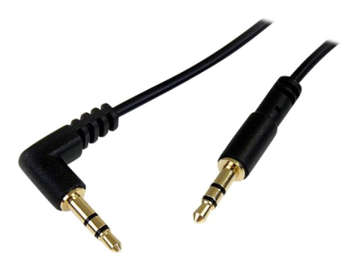 StarTech.com Câble audio slim Mini-Jack 3,5 mm vers Mini-Jack 3,5 mm coudé à angle droit de 1,8 m - M/M - Câble audio - mini-phone stereo 3.5 mm mâle pour mini-phone stereo 3.5 mm mâle - 1.8 m - noir - connecteur à angle droit - pour P/N: SV231DVGAU2A, SV431DVGAU2A