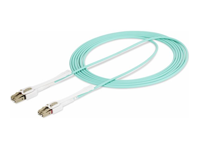 StarTech.com 3m (10ft) LC to LC (UPC) OM4 Multimode Fiber Optic Cable w/Push Pull Tabs, 50/125µm, 100G Networks, Bend Insensitive, Low Insertion Loss - LSZH Fiber Patch Cord (450FBLCLC3PP) - Cordon de raccordement - LC/UPC multimode (M) pour LC/UPC multimode (M) - 3 m - 2.9 mm - fibre optique - duplex - 50 / 125 microns - OM3/OM4 - sans halogène, moulé, débit de transfert de données jusqu'à 100 Gbps - turquoise 450FBLCLC3PP