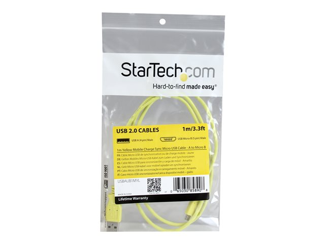 StarTech.com Câble de charge /synchronisation mobile USB A vers Micro B slim 1 m - Cordon USB 2.0 pour smartphone / tablette M/M - Jaune - Câble USB - Micro-USB de type B (M) pour USB (M) - USB 2.0 - 1 m - jaune
