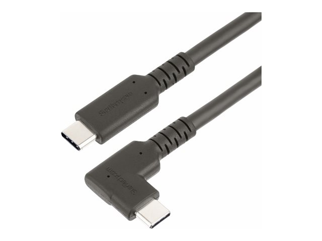 Connectez une source USB 10 Gbps et des périphériques, à l'aide de ce câble USB Type-C robuste à angle droit. Positionnez la connexion USB-C à angle droit le long de l'appareil pour réduire l'encombrement des câbles et éviter les tensions prolongées dues à la flexion.