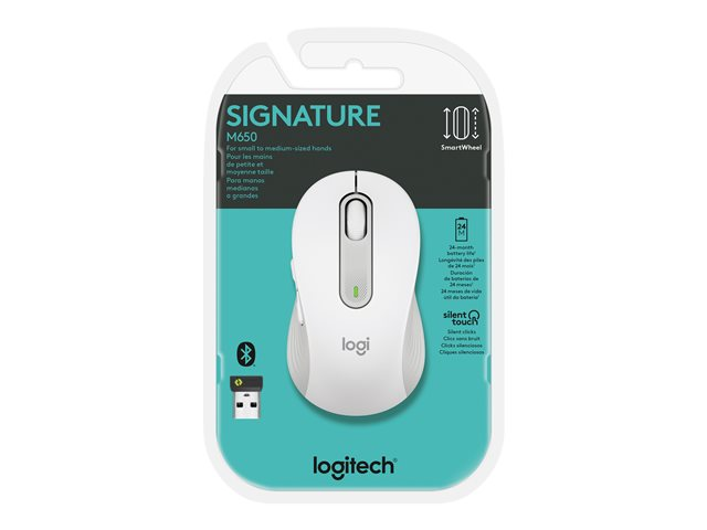 Logitech Signature M650 - Souris - optique - 5 boutons - sans fil - Bluetooth, 2.4 GHz - récepteur USB Logitech Logi Bolt - blanc cassé