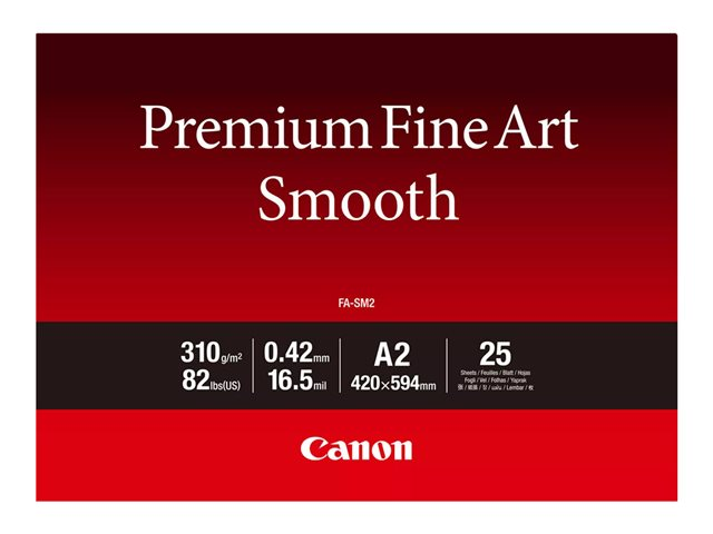 Canon Premium Fine Art FA-SM2 - Lisse - 16,5 millièmes de pouce - A2 (420 x 594 mm) - 310 g/m² - 82 lbs - 25 feuille(s) papier photo - pour imagePROGRAF PRO-1000 1711C016