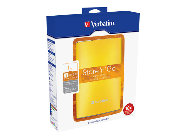 Verbatim Store 'n' Go Portable - Disque dur - 1 To - externe (portable) - 2.5" - USB 3.0 - 5400 tours/min - Jaune ensoleillé 53037