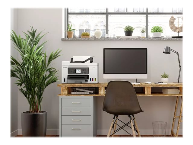 Imprimez de gros volumes de documents professionnels de haute qualité tout en réalisant d'importantes économies sur le coût par page et le coût total de possession grâce à cette imprimante MegaTank MAXIFY GX 4-en-1 rechargeable et facile à utiliser, équipée d'un chargeur automatique de documents.