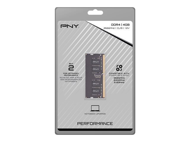 PNY - DDR4 - module - 4 Go - SO DIMM 260 broches - 2666 MHz / PC4-21300 - CL19 - 1.2 V - mémoire sans tampon - non ECC MN4GSD42666