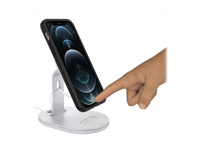 Installez ce support pour chargeur MagSafe haut de gamme et compact afin de bénéficier d'une expérience d'utilisation optimale et d'offrir à votre iPhone une recharge idéale. Son design élégant crée une surface parfaite sur laquelle placer et charger votre iPhone, le tout pendant que vous visionnez du contenu, discutez par v idéo ou répondez à des messages. Placez votre iPhone dans la direction souhaitée et adaptée à la tâche que vous effectuez pendant que le chargeur MagSafe d'Apple recharge votre téléphone sans fil. L'installation du support sur votre station de travail, le comptoir de votre cuisine ou votre chevet et très simple et permet de préserver le câble de votre chargeur. Le support pour chargeur MagSafe est un incontournable à intégrer à votre collection d'accessoires MagSafe.