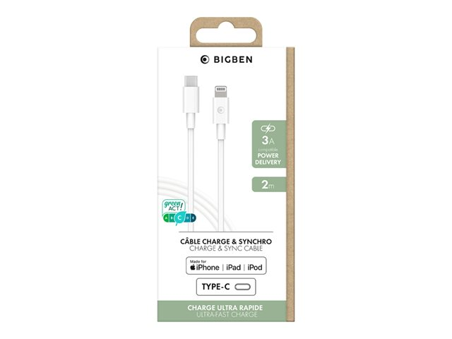 BIGBEN Connected - Câble Lightning - 24 pin USB-C mâle pour Lightning mâle - 2 m - blanc