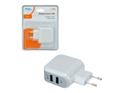 Bloc secteur avec 2ports USB idéal pour recharger vos périphériques USB tels que tablette, smartphone, iPhone etc.