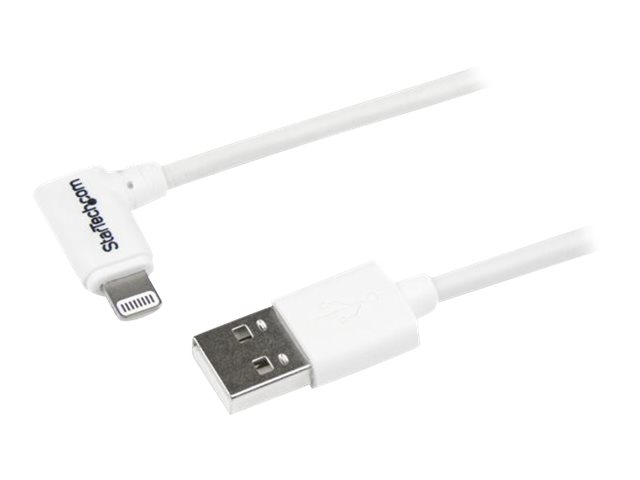 StarTech.com Câble Apple Lightning coudé vers USB de 1 m - Cordon de charge / synchronisation à angle droit ou gauche - M/M - Blanc - Câble Lightning - Lightning mâle pour USB mâle - 1 m - blanc - connecteur incliné - pour P/N: USB2PCARBK, USB2PCARBKS, USBLT2PCARW, USBUB2PCARB