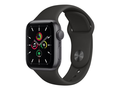 Apple Watch SE (GPS) - 40 mm - espace gris en aluminium - montre intelligente avec bande sport - fluoroélastomère - noir - taille du bracelet : S/M/L - 32 Go - Wi-Fi, Bluetooth - 30.49 g