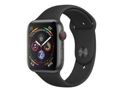 Apple Watch Series 4 (GPS + Cellular) - 44 mm - boîtier en acier noir inoxydable - montre intelligente avec bande sport - fluoroélastomère - noir - taille de bande 140-210 mm - 16 Go - Wi-Fi, Bluetooth - 4G - 47.9 g