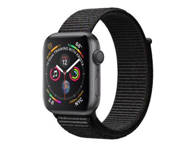 Apple Watch Series 4 (GPS) - 44 mm - espace gris en aluminium - montre intelligente avec boucle sport - nylon tissé - noir - taille de bande 145-220 mm - 16 Go - Wi-Fi, Bluetooth - 36.7 g