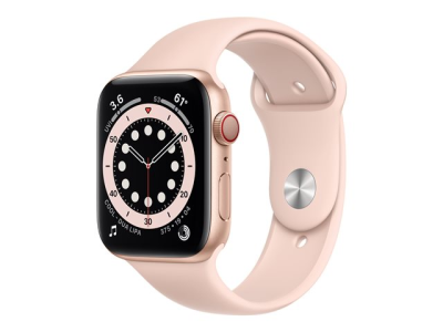 Apple Watch Series 6 (GPS + Cellular) - 44 mm - or-aluminium - montre intelligente avec bande sport - fluoroélastomère - sable rose - taille du bracelet : S/M/L - 32 Go - Wi-Fi, Bluetooth - 4G - 36.5 g MG2D3NF/A