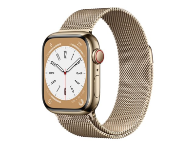 Apple Watch Series 8 (GPS + Cellular) - 41 mm - acier inoxydable doré - montre intelligente avec boucle milanaise - taille du poignet : 130-180 mm - 32 Go - Wi-Fi, LTE, Bluetooth, UWB - 4G - 42.3 g