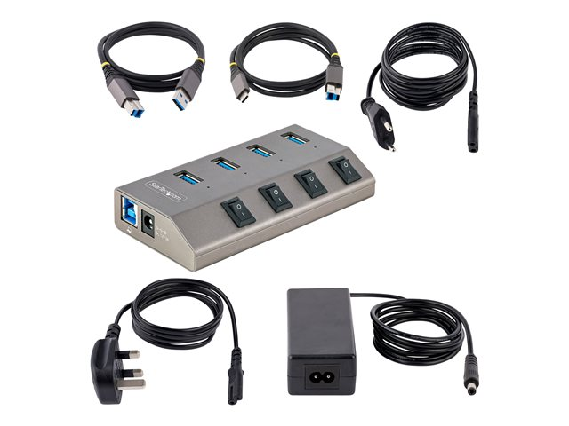 StarTech.com 4-Port Self-Powered USB-C Hub with Individual On/Off Switches, USB 3.0 5Gbps Expansion Hub w/Power Supply, Desktop/Laptop USB-C to USB-A Hub, 4x BC 1.2 (1.5A), USB Type C Hub - USB-C/A Host Cables (5G4AIBS-USB-HUB-EU) - Concentrateur (hub) - 4 x USB 3.2 Gen 1 - de bureau