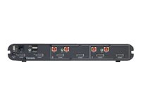 | Interfaces | 4 x entrée DisplayPort/HDMI 2 x sortie DisplayPort/HDMI 2 x clavier (USB) / souris (USB) Type B 1 x clavier (USB) Type A 1 x souris (USB) Type A 1 x sortie audio mini-jack 2 x entrée audio mini-jack 2 x USB 2.0 Type B common access card (CAC) 1 x USB 2.0 Type A common access card (CAC) 1 x gestion RJ-25 |