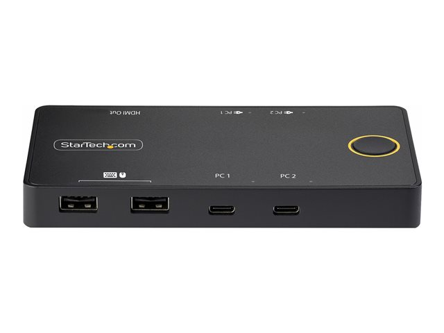 Ce commutateur KVM USB Type-C permet aux utilisateurs de basculer entre deux ordinateurs portables USB-C, en partageant un moniteur HDMI 4K 60Hz, un clavier et une souris, tout en chargeant simultanément chaque ordinateur portable.
