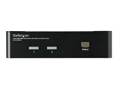 Le commutateur 2 ports USB HDMI SV231HDMIUA vous permet de contrôler deux ordinateurs ou périphériques compatibles USB et dotés d'interfaces vidéo HDMI, à l'aide d'une seule console ou d'un ensemble de périphériques (clavier, souris, moniteur, haut-parleurs et microphones USB). Le commutateur USB HDMI KVM est une solution KVM véritablement polyvalente, il est doté d'un concentrateur USB 2 ports intégrés qui permet à certains ordinateurs d'accéder à des périphériques USB haute vitesse partagés, supprimant ainsi le coût engendré par des achats supplémentaires de périphériques USB. Garantissant une capacité vidéo de haute qualité, le commutateur HDMI KVM prend en charge des résolutions HD d'au plus 1920 x 1200. Ce commutateur offre une excellente transmission du signal numérique, il peut être utilisé pour partager un panneau HD entre plusieurs sources HDMI, telles que les lecteurs Blu-Ray, les consoles de jeux vidéo et les médiathèques HD. Le commutateur prend également en charge les fonctions de commutation audio et microphone et vous permet de sélectionner des ordinateurs connectés, des ports du concentrateur du périphérique USB et des canaux audio et micro, de manière simultanée ou indépendante, à l'aide des boutons-poussoir du panneau avant ou des touches de raccourci du clavier. Bénéficie de la garantie StarTech.com de 3 ans et de l'assistance technique gratuite à vie.