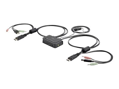 Le commutateur KVM DisplayPort à câble 2 ports avec audio et commutation distante SV211DPUA vous permet de contrôler 2 PC compatibles DisplayPort, USB à l'aide d'un seul jeu d'écran, de clavier, de souris et de périphériques audio.
