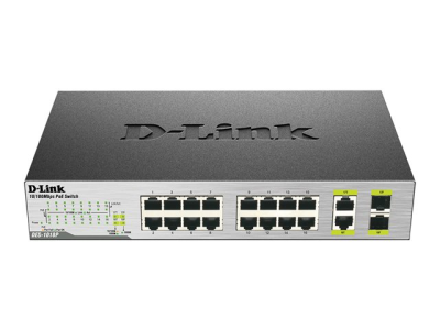Le commutateur PoE Ethernet rapide 18 ports dont 2 ports de liaison montante Gigabit DES-1018P de D-Link permet aux utilisateurs de se connecter à leurs périphériques PoE et de les alimenter en toute simplicité, notamment leurs points d'accès sans fil, caméras réseau et téléphones IP. Le DES-1018P permet également de connecter d'autres périphériques Ethernet comme des ordinateurs, des imprimantes et des périphériques de stockage réseau (NAS), afin qu'ils s'intègrent dans n'importe quelle application réseau.